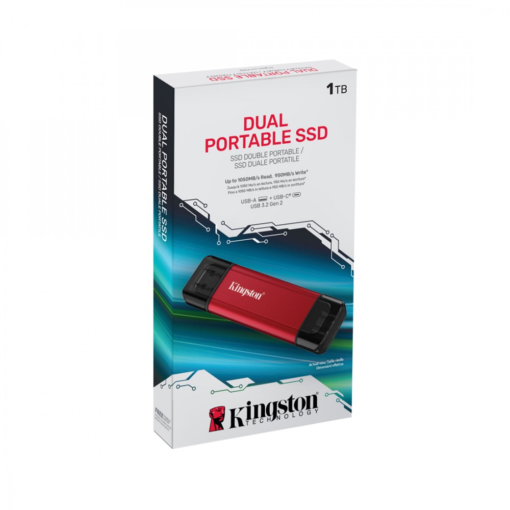 Внешний SSD диск, Kingston, Dual Portable, SPSD/2TB, 2TB, USB-C/USB-A, Красный