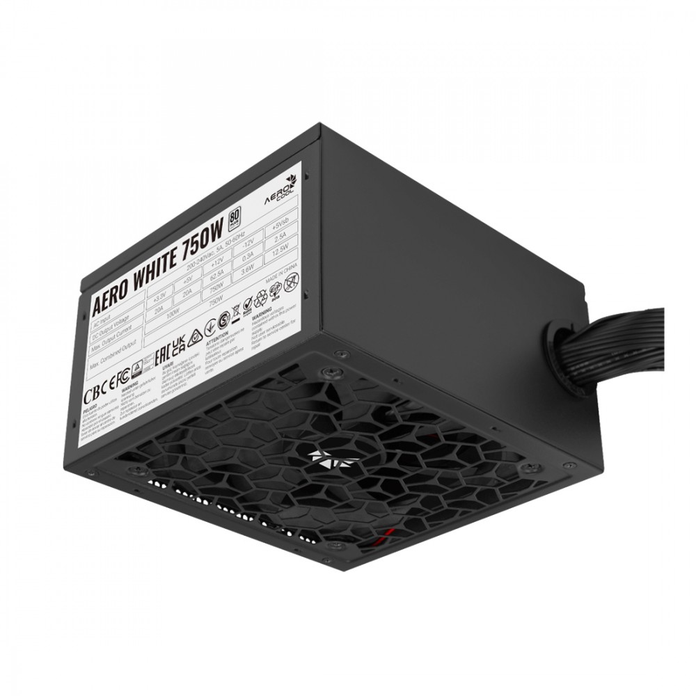 Блок питания, Aerocool, AERO WHITE, 750W, ATX, APFC, 20+4pin, 2*4+4pin, 6*Sata, 2*Molex, 3*PCI-E 6+2pin, Вентилятор 12см, Кабель питания, Чёрный