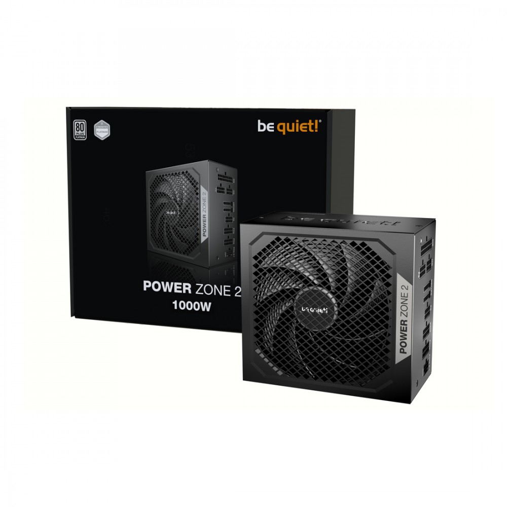Блок питания, Bequiet!, POWER ZONE 2 1000W, BP008EU, 1000W, ATX 3.1, Platinum, APFC, 20+4 pin, 2*4+4pin, 7*Sata, 1*Molex, 3*PCI-E 6+2 pin, 1*12VHPWR, Modular, Вентилятор 14мм, 160*150*86 см, Чёрный