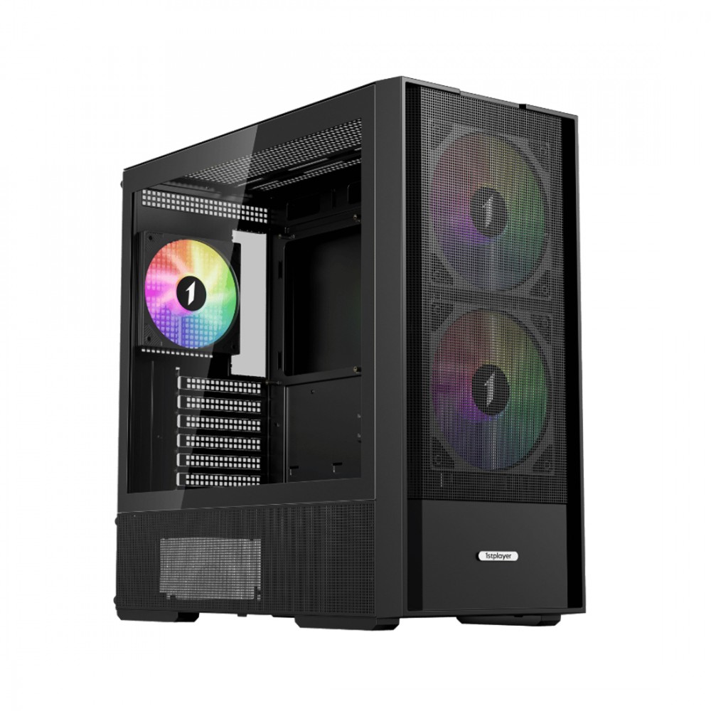 Компьютерный корпус, 1STPLAYER, AU7-BK, AU7-BK-2FA7-14-2FA7R-1FA7, ATX / M-ATX / ITX, 1*3.5\"/2*2.5\", Вентилятор 4*14см, Высота кулера до 170 мм, Длина VGA до 390 мм, 457x215x465 мм, Без Б/П, Черный