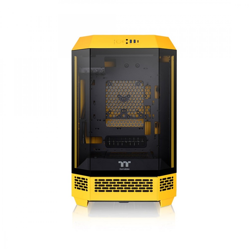 Компьютерный корпус, Thermaltake, The Tower 300 Bumblebee, CA-1Y4-00S4WN-00, Micro-Tower, Mini-ITX/M-ATX, USB 3.2*1, USB 3.0*2, HD Audio/mic, 3*140мм CT140 fan, Максимальная длина видеокарты 400мм, Максимальная высота процессорного кулера 210мм, 3*3,5\"/3*2,5\", Сталь, 3мм Закаленное стекло*3, 551*342*281мм, Без Б/П, Желтый