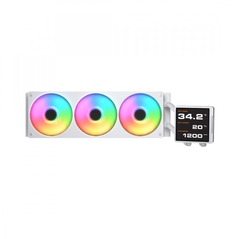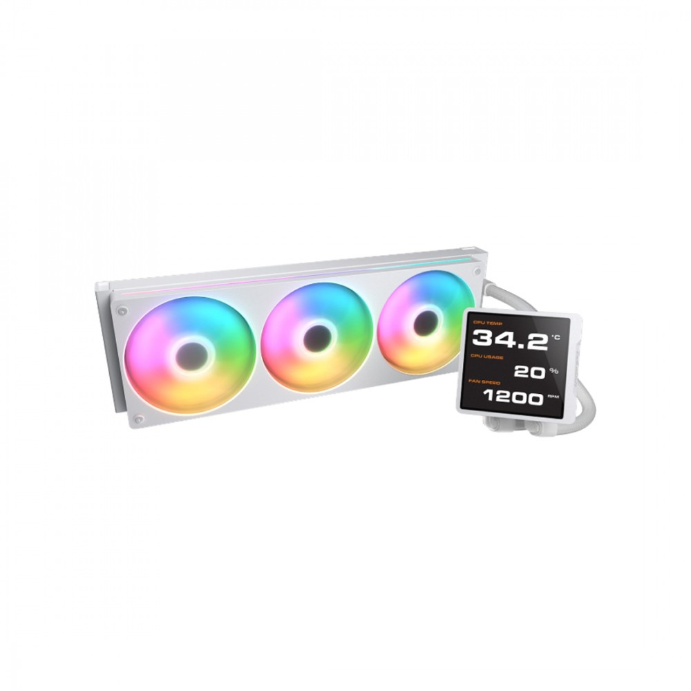Кулер с водяным охлаждением, Cougar, Poseidon Vistek Pro ARGB 360 WH, Intel 1851/1700/1200/115х и AMD AM5/AM4, 3*120мм Unity ARGB, 700-2500 RPM±10%, 78,2CFM, 38 dB(A), Белый