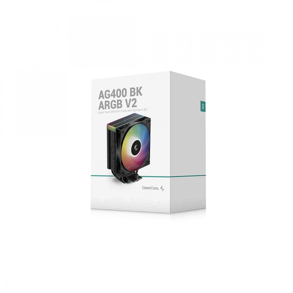 Кулер для процессора, Deepcool, AG400 BK ARGB V2 R-AG400-BKAMMN-GJD, Intel 1851/1700/1200/115х и AMD AM5/AM4, 220W, 120мм ARGB, 500- 2100±10% об/м, 75,89CFM, 31.6dB(A), 4pin, 125х92х154мм, Чёрный
