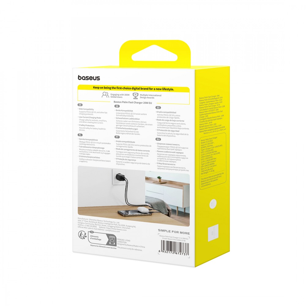 Адаптер питания, Baseus, Palm (P10111608113-00), C+U, 20W, Черный