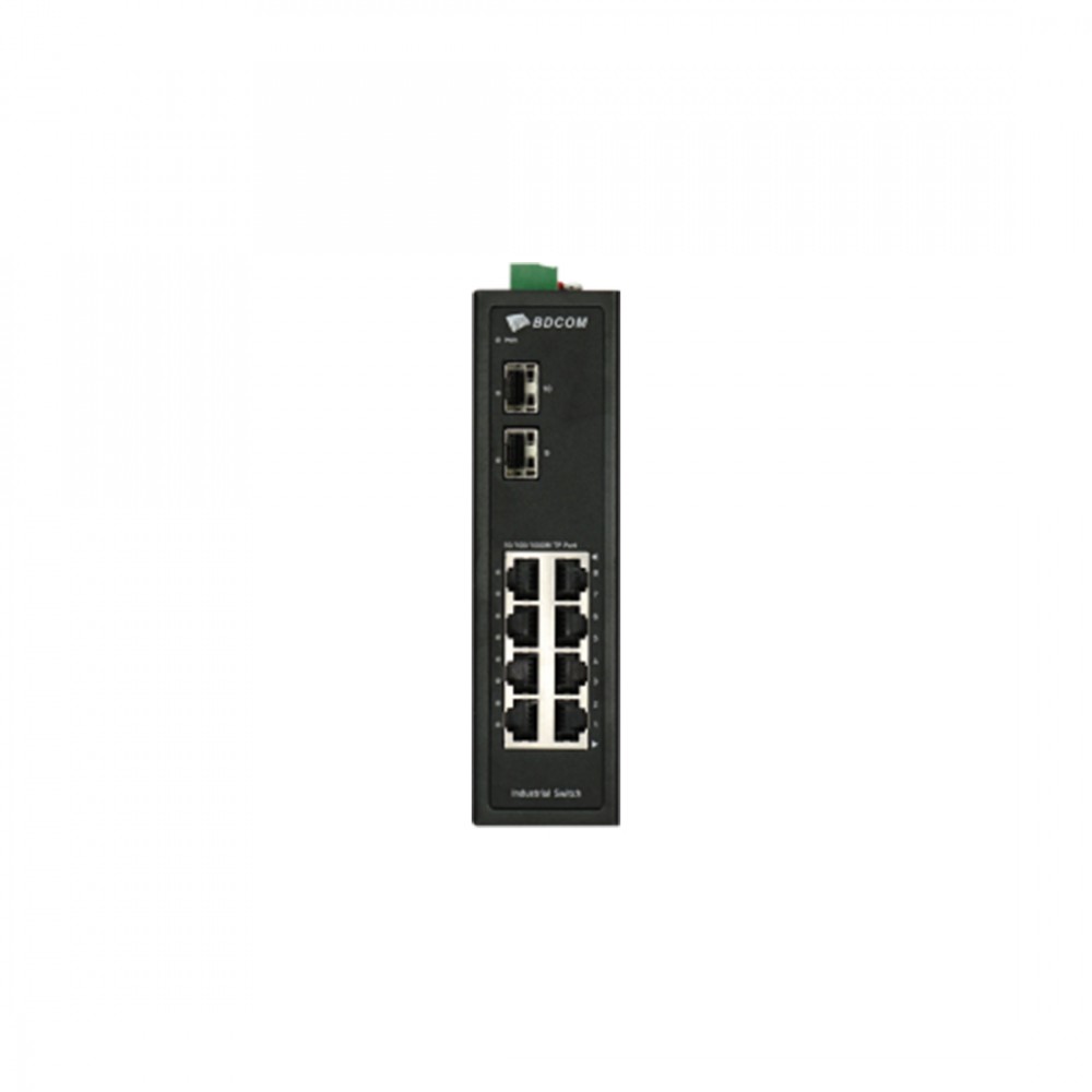 Коммутатор, BDCOM, IES200-LSTW2080, Неуправляемый, 8 портов 10/100/1000М RJ45, 2 порта SFP, DC 12-55В Dual RPS, -40+75°C, DIN-rail, без блока питания