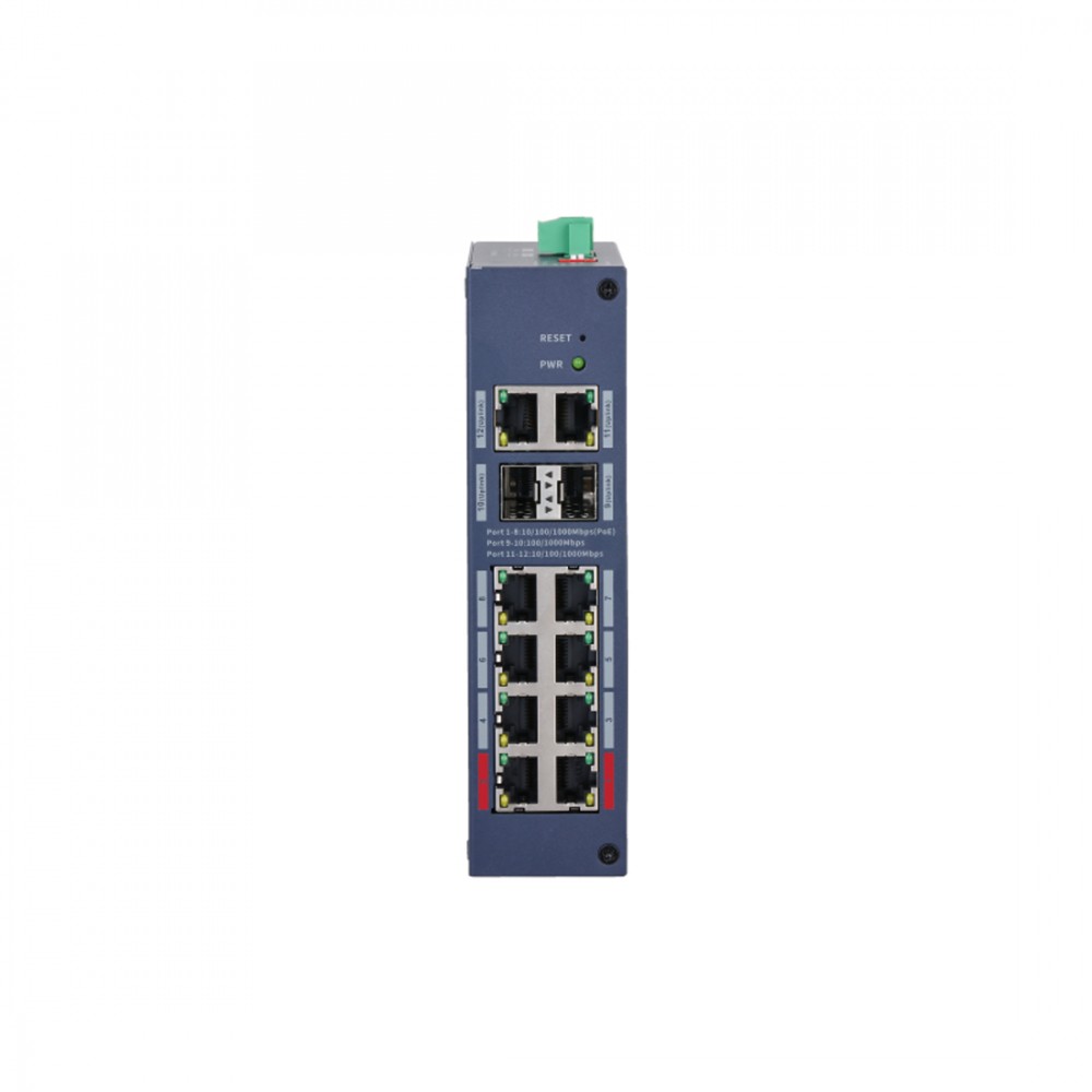 Коммутатор, Dahua, DH-CHS4212-8GT-110, Индустриальный, Управляемый L2, 8 портов 10/100/1000T PoE (802.3af/at/bt 120W), 2 порта SFP 1000M (uplink), 2 порта 10/100/1000 Mbps (uplink)