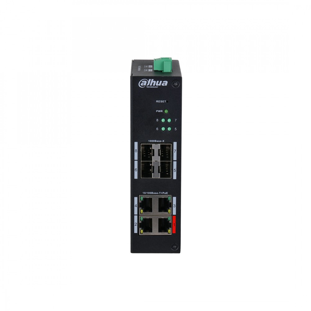 Коммутатор, Dahua, DH-HS4408-4ET-96, Управляемый L2, 4 10/100 Mbps PoE портов (port1<=90W,port3-4<=30W,total<=96W), 4 SFP 1000 Mbps, индустриальный, –30 °C to +65 °C
