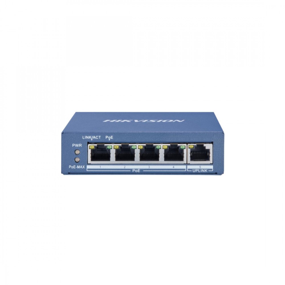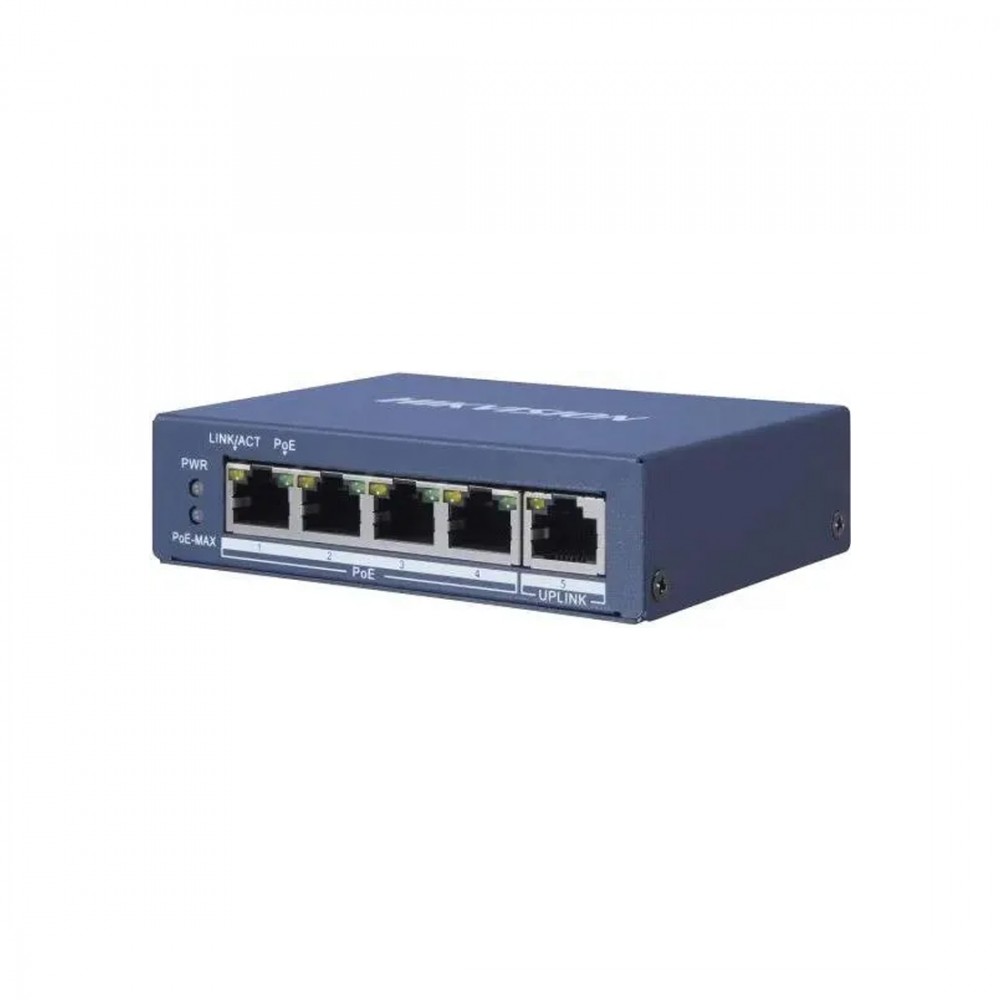 Коммутатор, Hikvision, DS-3E0505P-E(B), Неуправляемый, 4 x Gigabit RJ45, РоЕ 802.3af/at 60W, 1 x Gigabit RJ45, Настольный, Металл
