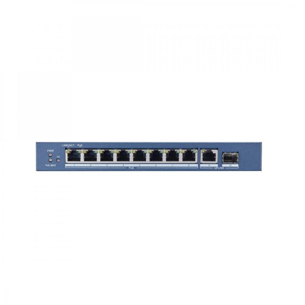 Коммутатор, Hikvision, DS-3E0510P-E/M(B), Неуправляемый, 8 x Gigabit RJ45, РоЕ 802.3af/at 58W, 1 x Gigabit RJ45, 1 x SFP combo, Настольный, Металл