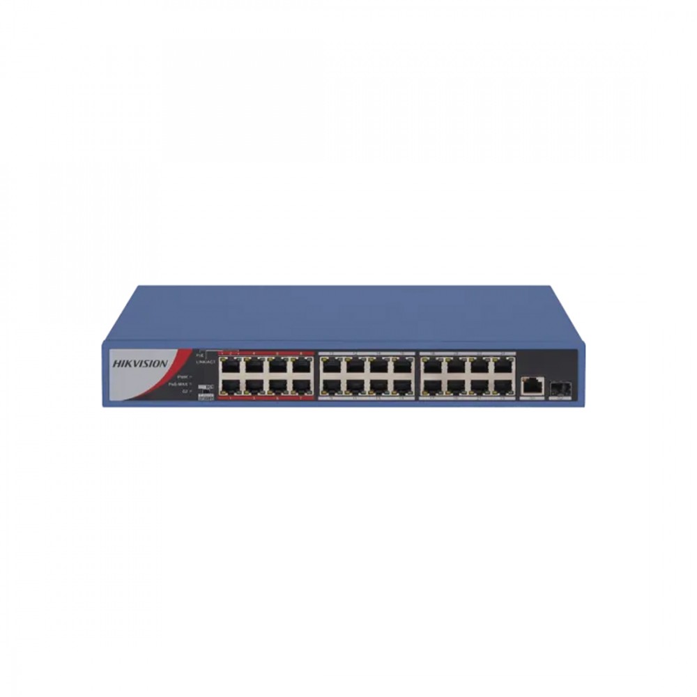 Коммутатор, Hikvision, DS-3E0326P-E/M(C), Неуправляемый, 24 x 10/100 Mbps, РоЕ 802.3af/at 230W, 1 x Gigabit RJ45, 1 x SFP, Стоечный, Long Range Ports 17 to 24: up to 300 m.
