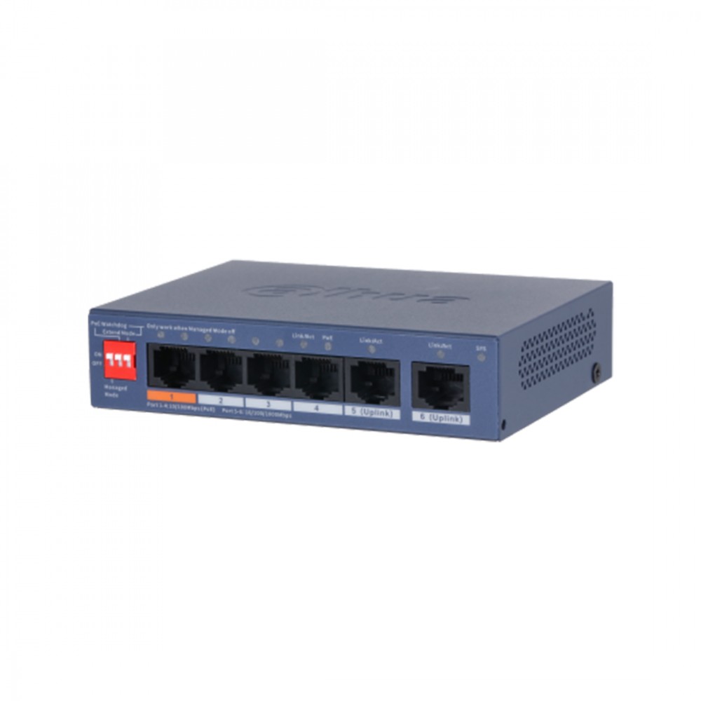 Коммутатор, Dahua, DH-CS4006-4ET2GT-60, Управляемый, 4 порта 10/100M (PoE 802.3af/at,60W), 2 порта 10/100/1000M
