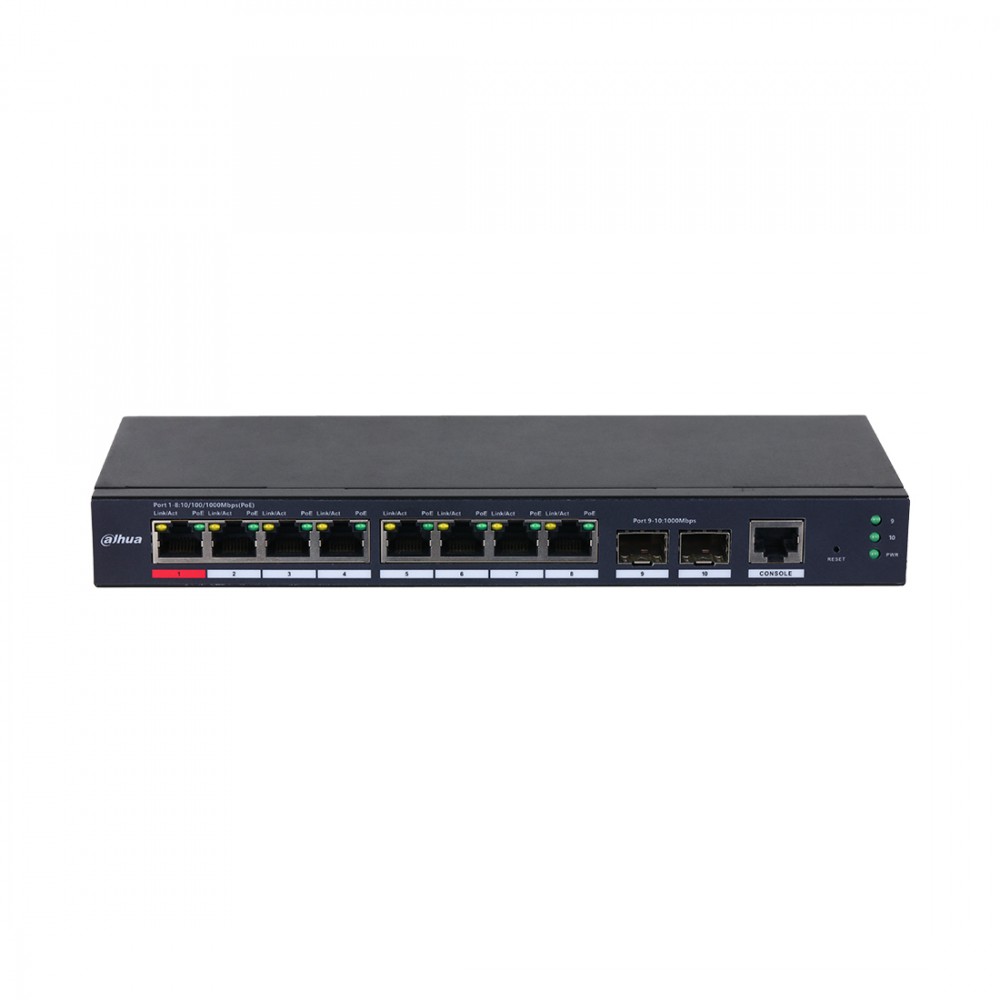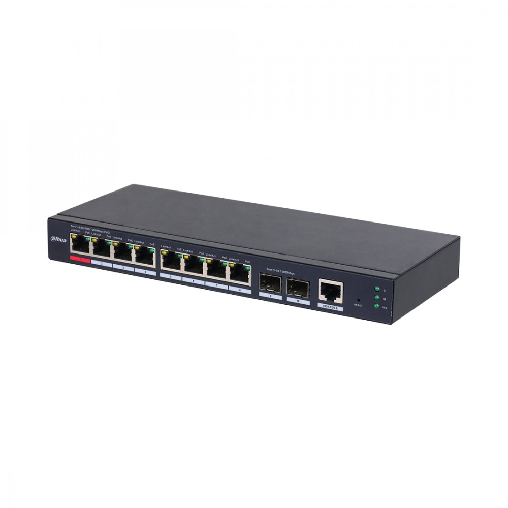 Коммутатор, Dahua, DH-S4210-8GT-110, Управляемый, 8 портов 10/100/1000 Mbps (PoE 802.3af/at/bt/Hi-PoE,110W), 2 SFP