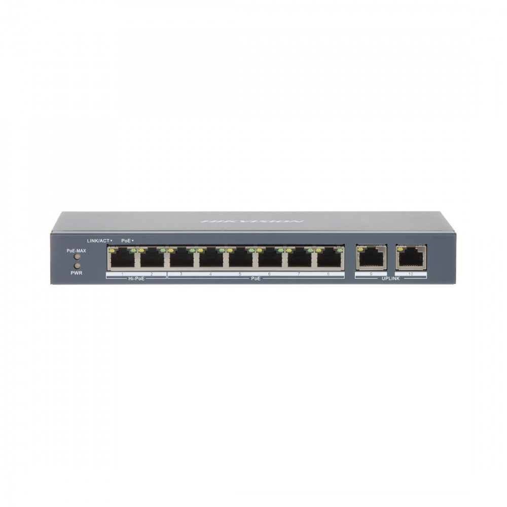 Коммутатор, Hikvision, DS-3E1310P-EI (B), Управляемый L2, 8 x 10/100 Mbps, РоЕ 802.3af/at 110W, 2 x Gigabit RJ45, Настольный, Металл