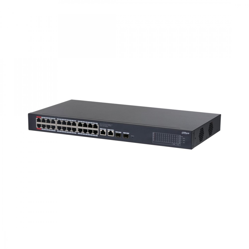 Коммутатор, Dahua, DH-CS4228-24GT-240, Управляемый L2, 24 RJ-45 10/100/1000 Мбит/с (PoE 240W). Порт 25-26: 2 RJ-45 10/100/1000 Мбит/с (восходящий канал). Порт 27-28: 2 SFP 1000 Мбит/с (восходящий канал)