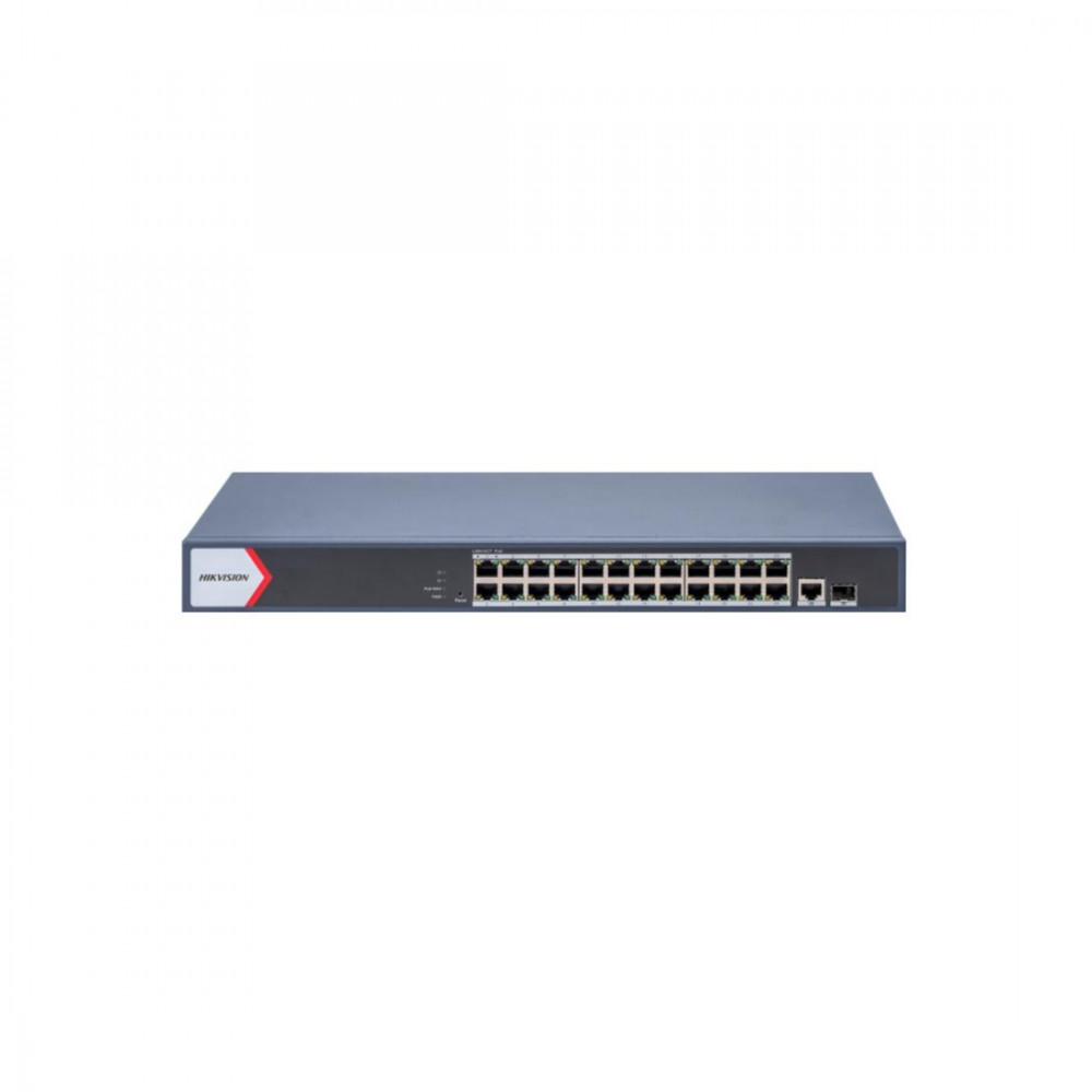 Коммутатор, Hikvision, DS-3E1526P-EI/M, Управляемый L2, 24 x Gigabit RJ45, РоЕ 802.3af/at 230W, 1 x Gigabit RJ45, 1 x SFP combo, Стоечный, Long Range Ports 1 to 24: up to 300 m.