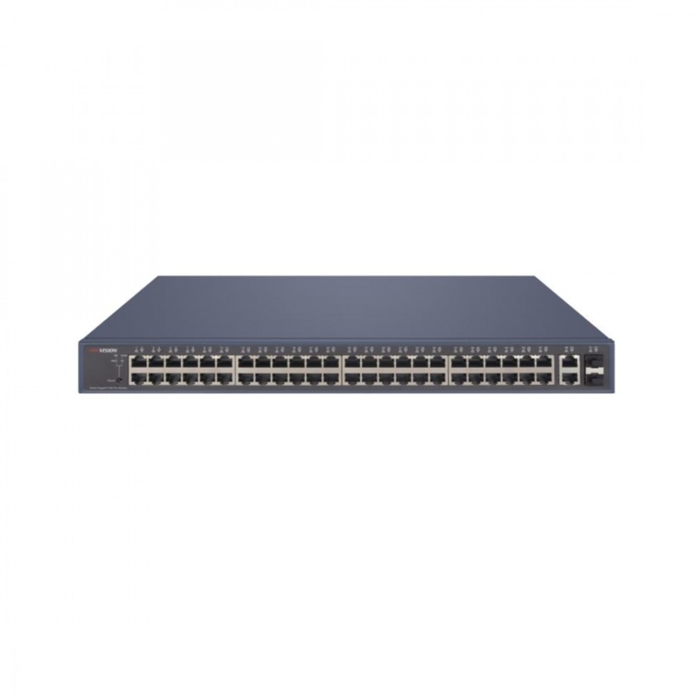 Коммутатор, Hikvision, DS-3E1552P-SI, Управляемый L2, 48 x Gigabit RJ45, РоЕ 802.3af/at 470W, 2 x Gigabit, 2 x SFP, Стоечный, Long Range Ports 1 to 48: up to 300 m.