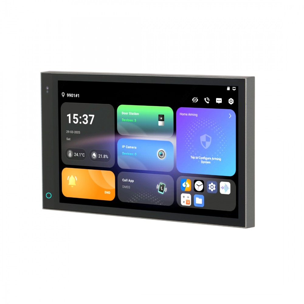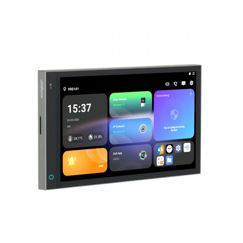 Домофонная система, Dahua, DHI-SCP3024A-B, Android 14, 7 дюймовый сенсорный экран, Оснащенное встроенным датчиком освещенности, устройство автоматически регулирует яркость экрана для комфортного просмотра.Wi-Fi 2.4 ГГц